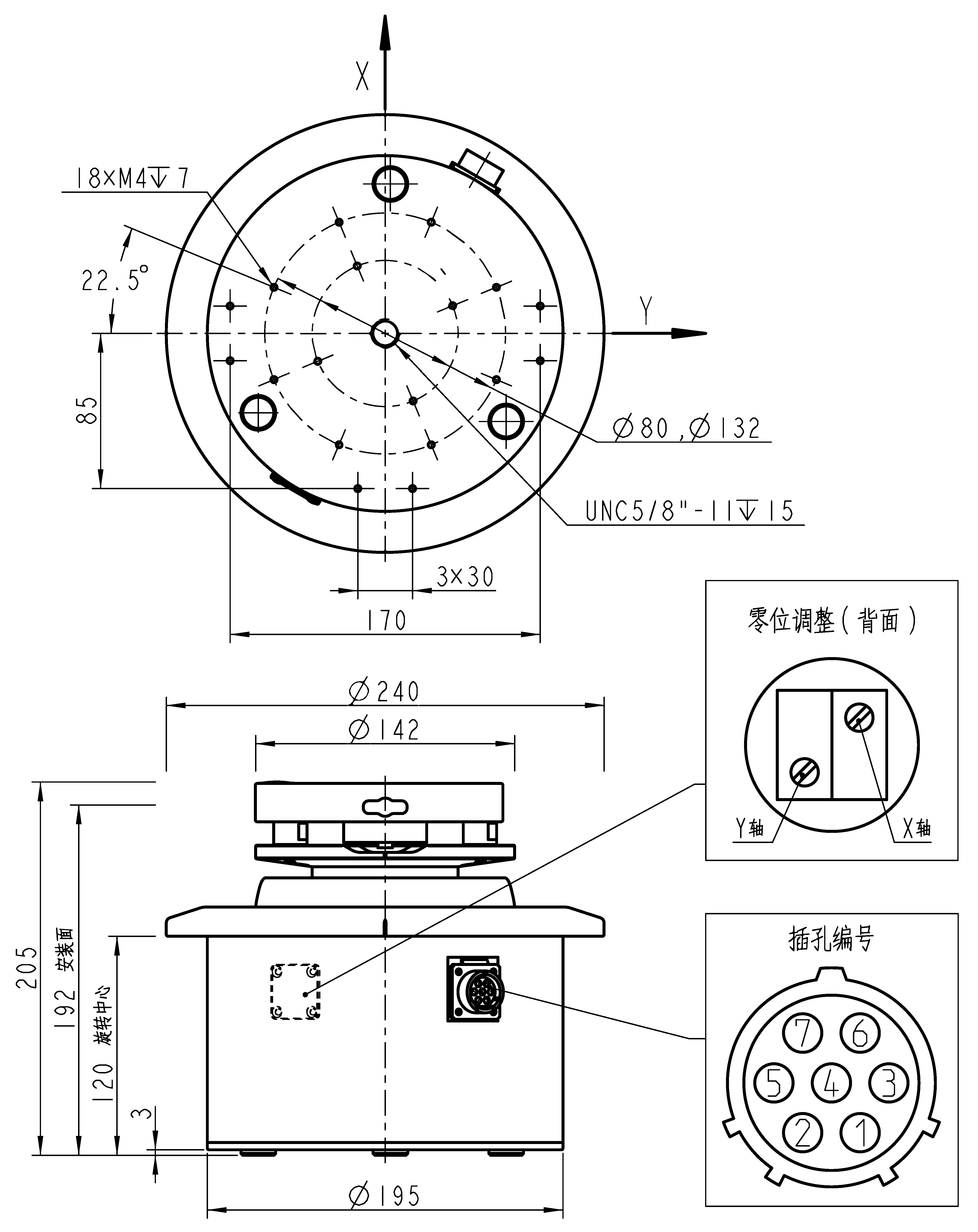 7. 外形尺寸:                    Φ240mm×205mm,详见外形图。